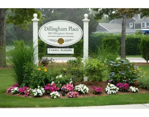 Dillingham Place is a premier condo complex offering totally independent living for ages 62 and older. This beautiful south facing condo is 1,176 SF with, 2 bedrooms, 2 full baths. Primary bedroom with private bath. Living room with gas fireplace, dining room, fully equipped custom Kitchen. Condo fees include heat, AC, electric, water, master insurance, all kitchen appliances, all heating and air-Cond systems including upkeep, repairs and replacements. No surprises to your budget! 24 hour concierge service, daily complimentary continental breakfast. Nightly dinners are available at nominal fees in the dining room or delivered to your condo at no additional fee. Many gathering rooms include a media room, library, exercise room and more. Secure parking garage with courtesy carts to assist with groceries etc. This is a fabulous opportunity to live in an easy, safe lifestyle in downtown Falmouth. Don't wait!